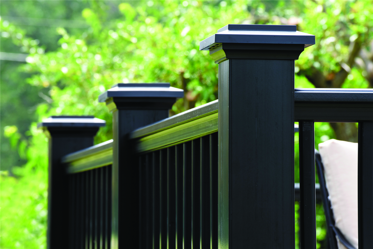 During a deck railing installation, you can also choose the type of infill for your new railing. The infill is the section between the top and bottom rails. Most traditional railing systems feature vertical balusters. Made from aluminum or composite materials, TimberTech balusters are usually round or square.